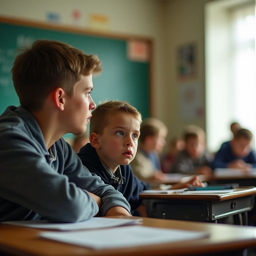Учитель тихо подошёл к мальчику, и в классе на мгновение наступила тишина. «Илья, я хочу тебе кое-что сказать», — прошептал он, его голос был неожиданно мягким и проникновенным. Вокруг послышался тихий шёпот и удивлённые взгляды учащихся. Никто не ожидал такого обращения: кто мог подумать, что учитель скажет что-то столь необычное? Мальчик поднял глаза, ощутив, как кровь застыла в венах, а сердце екнуло от предвкушения. Все взгляды были прикованы к нему, а наступившая тишина давила, словно свинцовое одеяло.