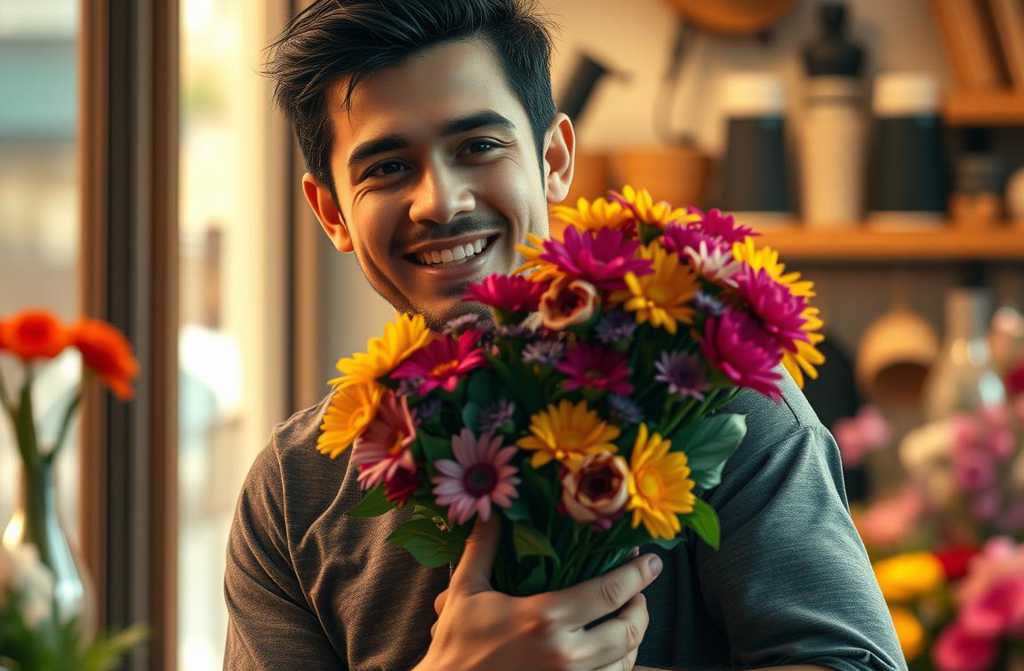 «Could you pick out the loveliest bouquet you have? The grandest one, please. Ive just had a son!» beams the young man, his face alight with joy as he addresses the pretty florist.