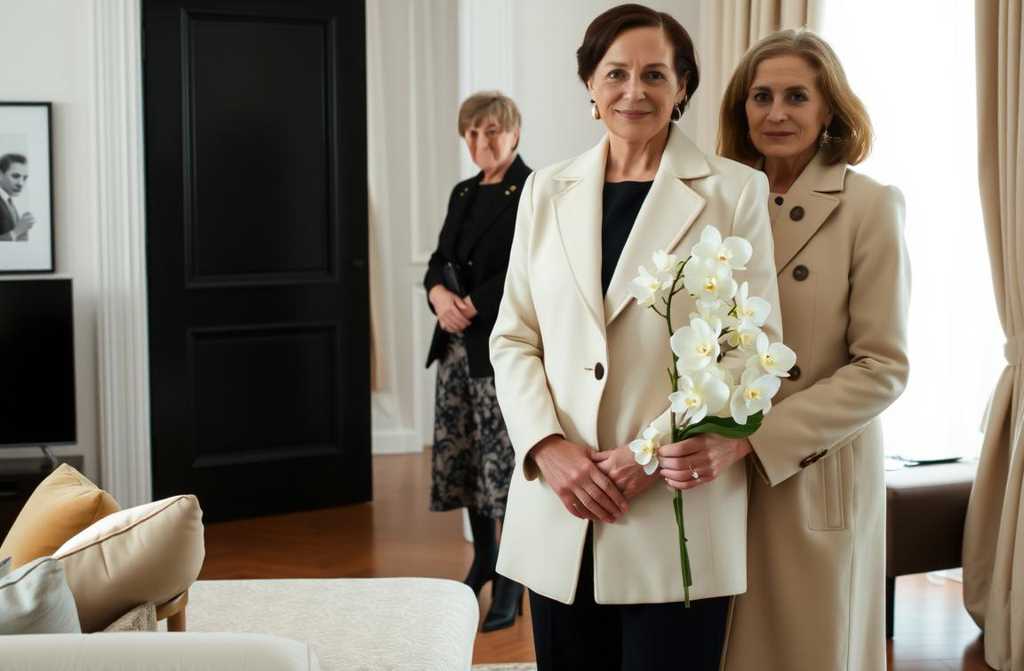 Und dann, eines Morgens, klingelte es an der Tür. Meine Mutter stand da in einem cremefarbenen Max-Mara-Mantel, mit einem Louis-Vuitton-Koffer und einem Strauß weißer Orchideen. Ihr Haar perfekt frisiert, das Make-up makellos, ihr Blick ruhig und selbstbewusst.
