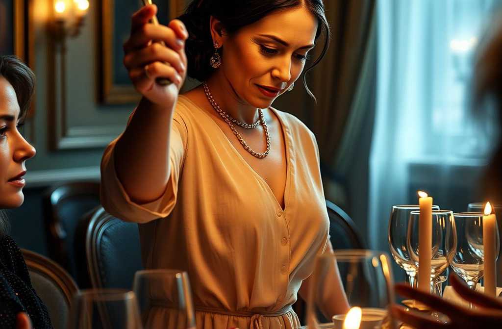 Lina erstarrte mit der Gabel in der Hand, erstarrt zu einer Statue aus Scham und Unglauben. Das Stück Schinken, sorgfältig auf die Zinken gespießt, erreichte nie den Kristallteller, blieb halb in der Luft hängen. Sie, so zart wie Herbstspinnweben, saß ihrem Mann gegenüber und spürte, wie sich dutzende Blicke auf sie richteten stechend, mitleidig, verwirrt. Ihr eigener Körper fühlte sich plötzlich fremd an, schwer, ihr Herz sprang in den Hals und schnürte ihr die Luft ab.