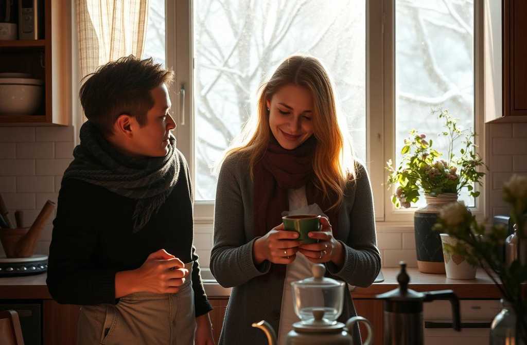 Morning came early. I reached the bathroom first, hearing her footsteps outside. The pipes groaned as the water ran. I hurried, not wanting to keep her waiting. In the kitchen, I searched for tea and saw two mismatched mugs. «Which one?» I asked. «Either,» she said, but I sensed a trap. I brewed black tea for her, green for myself. She nudged the sugar bowl closer without a word. We breakfasted at the small table by the window. Outside, wet snow clung in patches, dripping from the ledge. I stole glancesher eyes were tired, lips slightly tight.