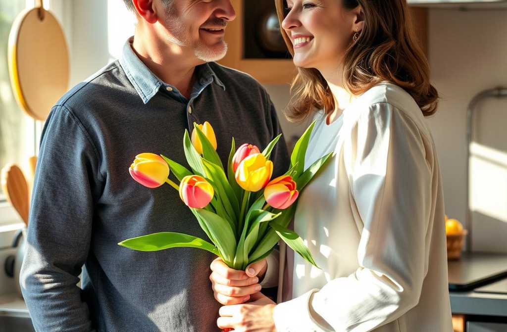 Yeah, the groceries are in the car. And this is for you, he said, pulling out a small bunch of tulips.