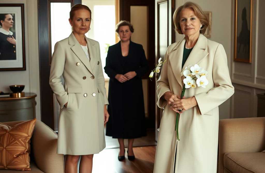 One morning, the doorbell rang. There stood Mumcream Max Mara coat, Louis Vuitton suitcase, a bouquet of white orchids in hand. Hair perfectly styled, makeup flawless, gaze steady.