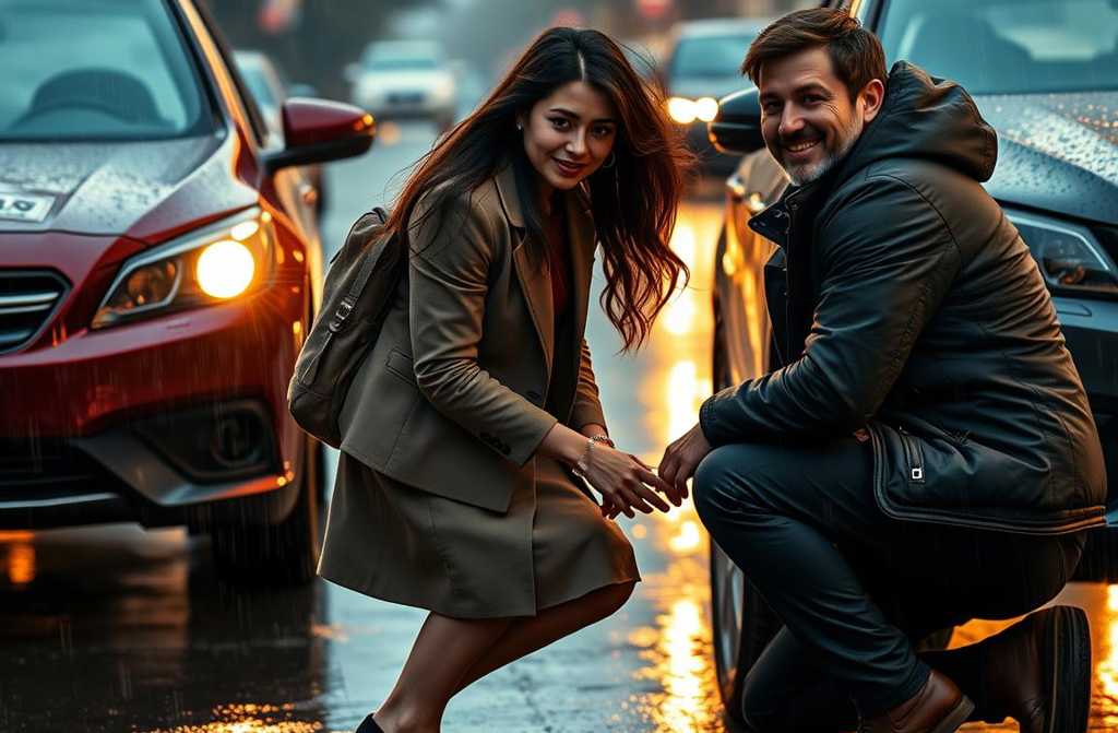 Standing by the open boot, deliberating whether to call roadside assistance, a Range Rover pulled up. A bloke got out, took one look at the flat tyre and her flimsy shoes, and sighed.