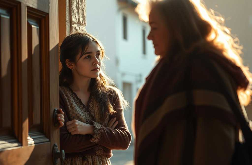 A woman wiped her damp hands on her apron, wincing at the ache in her spine as she shuffled toward the door. The bell had chimed softlythree times nowwhile shed been scrubbing the kitchen window. Standing on the step was a girl, barely more than a child, her face pale as parchment, eyes shadowed with exhaustion.