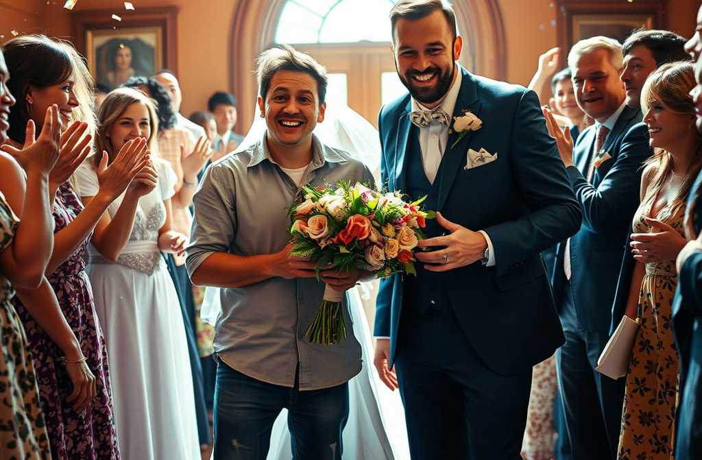 Francamente, fue una de las escenas más extrañas de mi vida. Estuve al lado del novio, que no dejaba de tirarse de la manga y miraba el reloj como si temiera llegar tarde a su propia boda, y de la novia, que parecía a punto de llorar de felicidad y nervios a la vez. Respiraba hondo, se mordía el labio y el velo temblaba levemente. No sabía sus nombres. Ni siquiera estaba seguro de cómo sostener el ramoen qué mano, en qué ángulo, sin parecer un impostor.