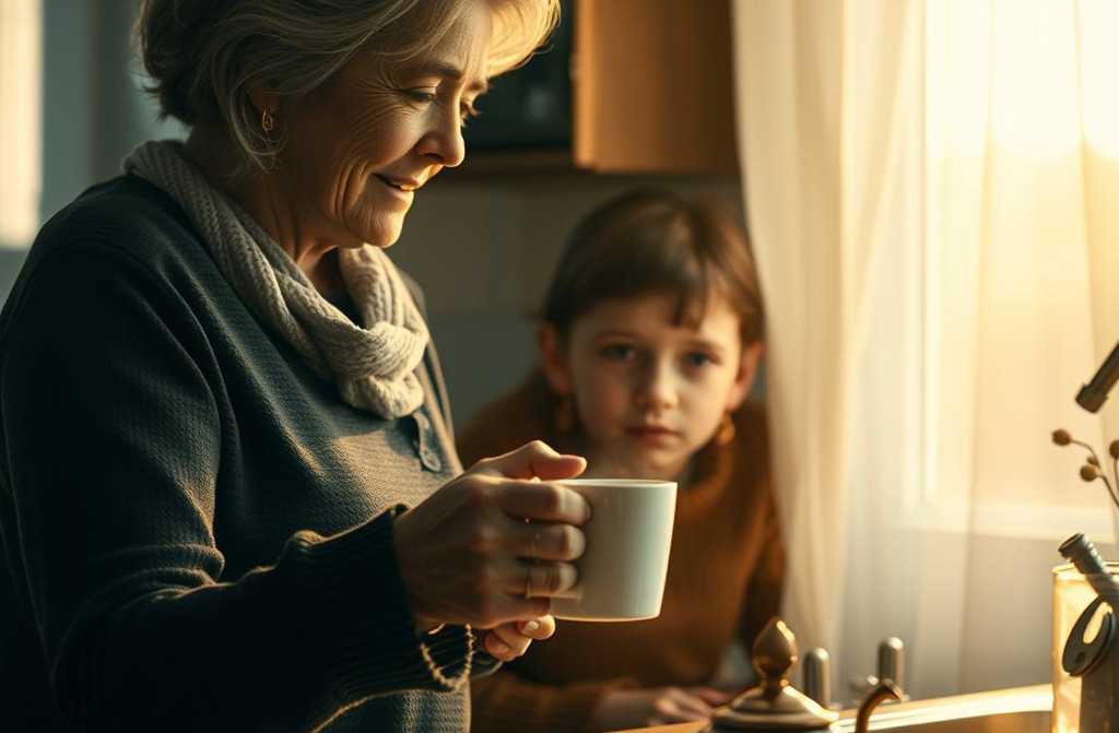 The next morning Mum woke before him. She could hear his quiet breathing through the thin bedroom wall and tried not to clatter dishes. The flat felt tighter: his stuff had reclaimed the hallway and the bathroom; his toothbrush next to her old mug looked oddly bright.