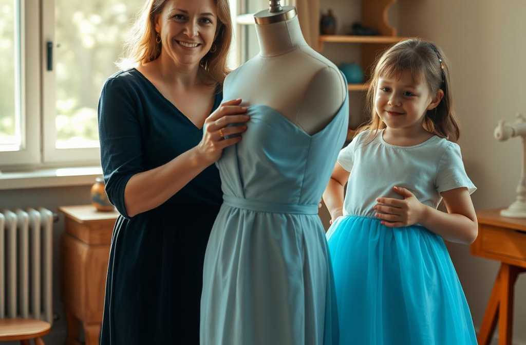 Inspired, Emily began designing more piecesskirts, blouses, coats. Lily, seeing her mothers work, burst with pride.