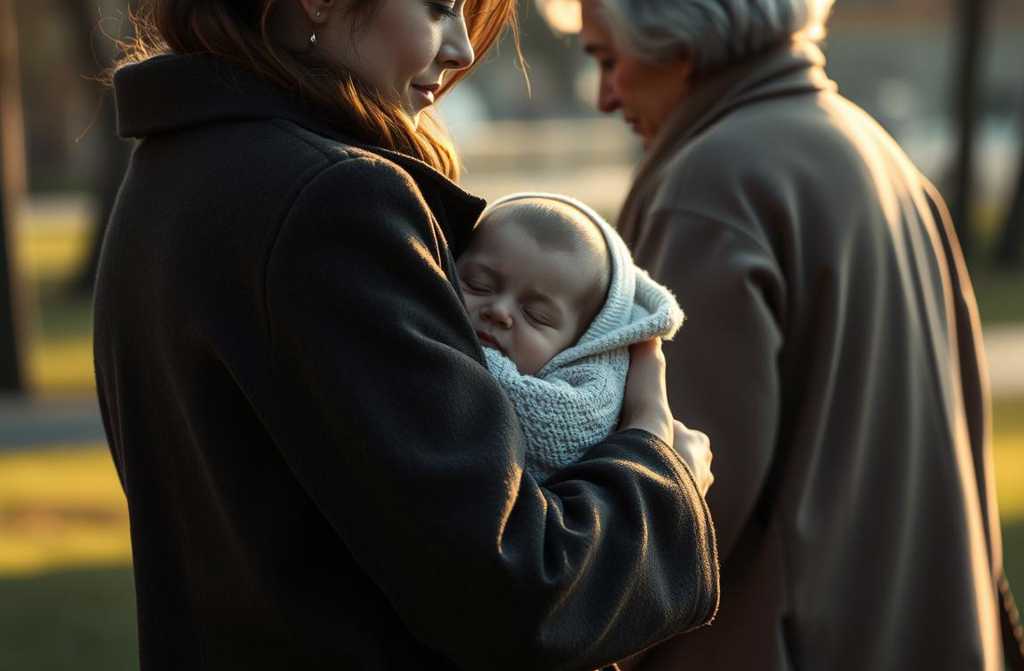 María giró despacio, aferrando a su hijo al pecho. El bebé de ocho meses, Juanito, respiraba tranquilo sobre su hombro, envuelto en un mono térmico. El parque de la Plaza Mayor estaba vacío bajo el cielo grisáceo de un lunes. Sólo unos pocos transeúntes pasaban, abrigados bajo gabardinas y bufandas.