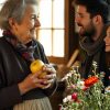 A los pocos días, Gloria y Sergio estaban en el pueblo. Luisa, la mujer de Sergio, puso la mesa en el jardín, cerca de la barbacoa. Vinieron vecinos, amigos y el compañero de Sergio: el viudo Alejandro. Los vecinos ya conocían a Gloria, pero con Alejandro era la primera vez que se veían.