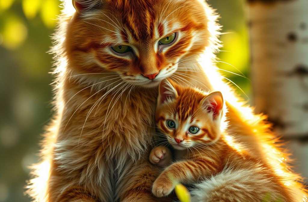Sie bekam ihre Jungen ganz leise. Es waren wunderschöne Kätzchen: ein schwarzes Mädchen wie der Vater und ein roter Junge wie Sima selbst. Perle und Rotschopf…