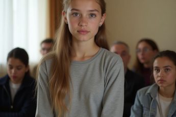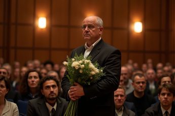 Тусклый свет ламп заливает школьный актовый зал, где пахнет свежими цветами и старым деревом.