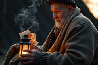 A man wiped his hands dry and, wincing from the ache in his back, shuffled to answer the door.
