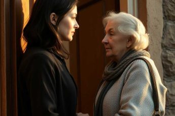 A woman wiped her hands dry and, wincing from an ache in her back, shuffled to answer the door.