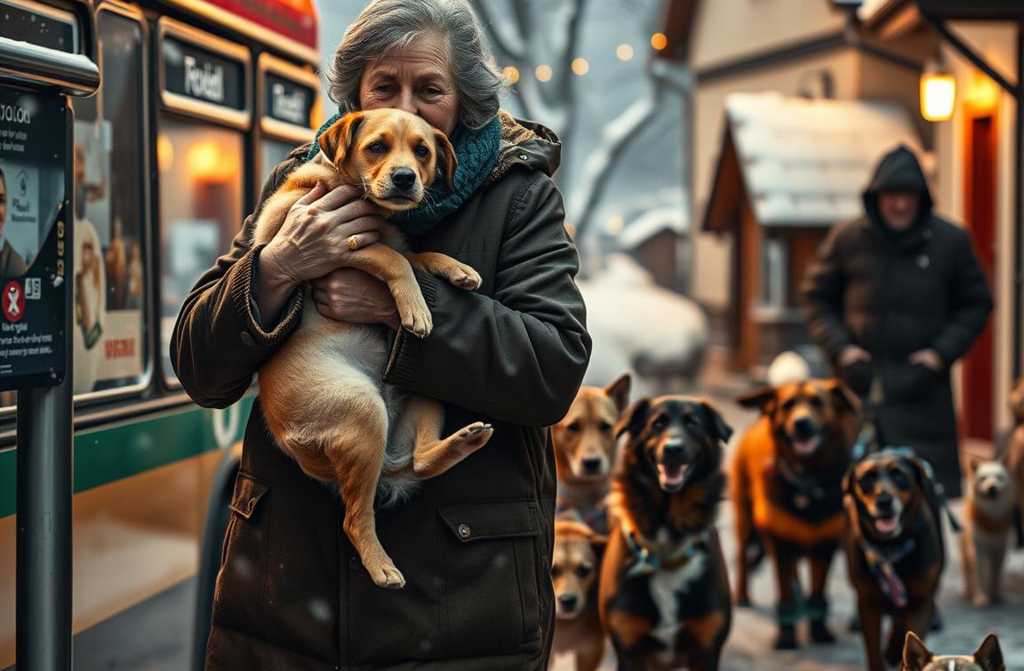 Bajo un banco yace un perro, con la mirada perdida y casi de cristal; la nieve ya cubre su cuerpo. La gente pasa apresurada, envuelta en bufandas y capuchas. ¿Acaso nadie lo ve? El corazón de Lidia se aprieta con dolor; olvida el autobús y la promesa, corre hacia el banco, suelta las bolsas y extiende la mano al animal. El perro parpadea lentamente.