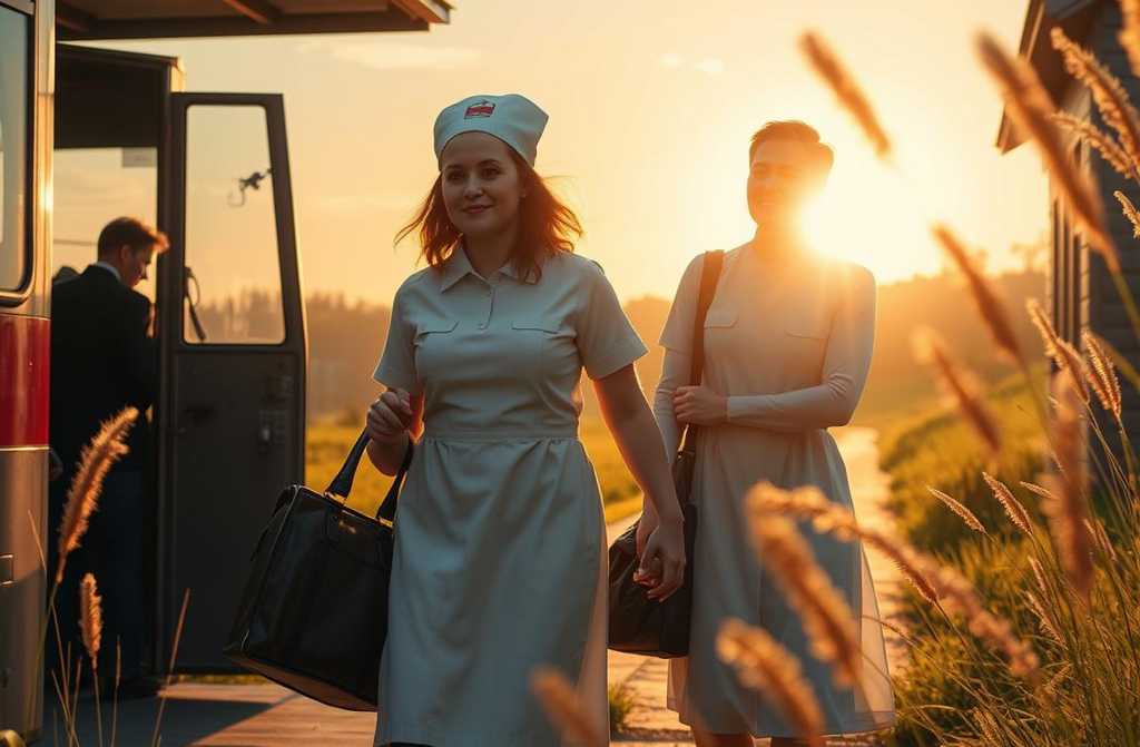 Die Schatten waren bereits lang und dicht, als der Bus, der täglich seinen Weg aus der lärmigen, staubigen Stadt in die stille ländliche Abgeschiedenheit zurücklegte, mit einem Zischen der Luftbremsen an der bekannten Haltestelle hielt. Die Tür öffnete sich, und sie trat hinaus. Katharina. Die Müdigkeit ihrer zwölfstündigen Schicht als Pflegerin im städtischen Krankenhaus lastete schwer wie Blei auf ihren Schultern, schmerzte in ihrem Kreuz. Die Luft, erfüllt vom Duft frisch gemähten Grases und dem Rauch der Holzöfen, war der erste Balsam für ihre erschöpfte Seele.