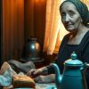 In the centre, on a bench, sits a bouquet of white lilies. Emily freezes.