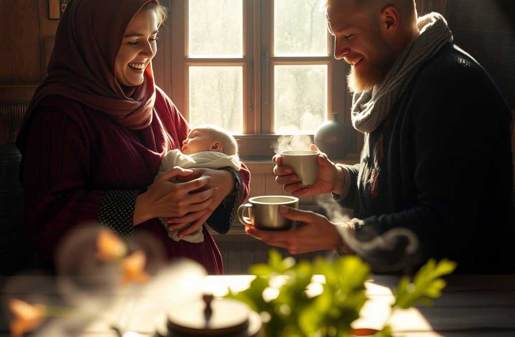 Dentro, la habitación estaba iluminada por el fuego. Sobre la cuna había un montón de ropa para el bebé. Pedro, con la cabeza sobre las manos, dormía. Al oír el crujido de la puerta, se incorporó, y al ver a Luz, cubierta de barro y sin un zapato, corrió a abrazar al niño y lo colocó en la cuna. Encendió la estufa, sacó una olla con agua caliente y, mientras Luz se cambiaba, la mesa ya estaba servida: patatas cocidas, pan recién horneado y leche tibia.