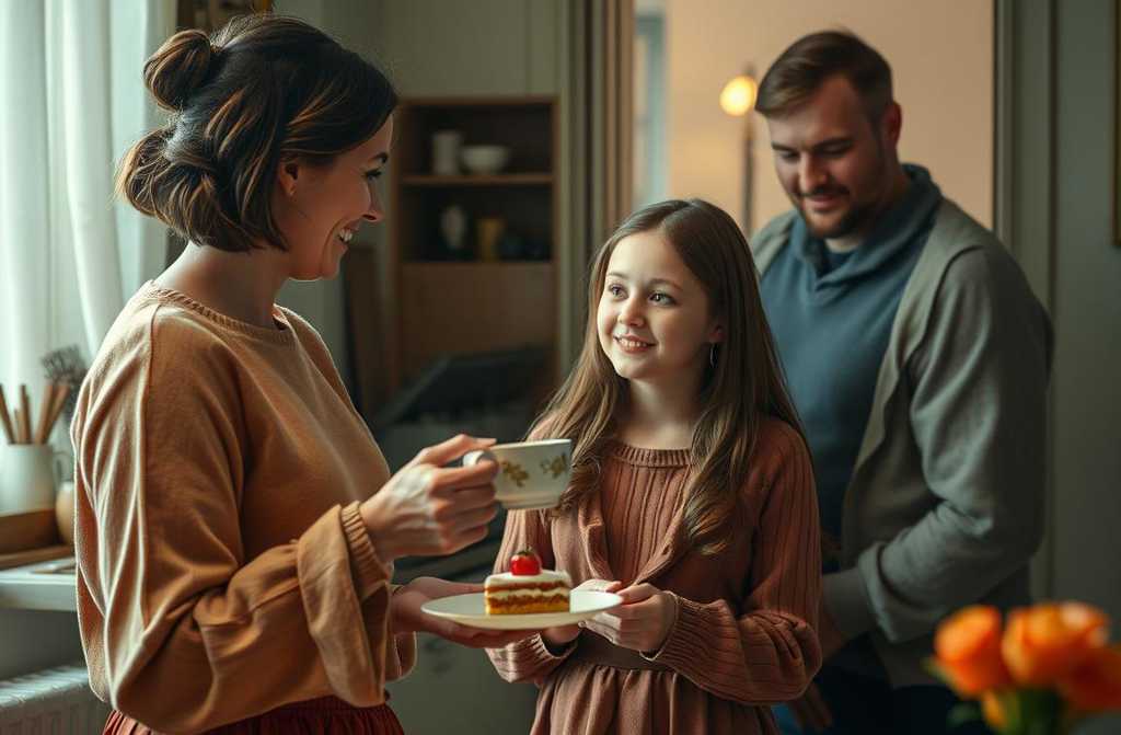 Ese mismo día, cuando Ignacio trajoó a Lucía a casa, Ana tomó un plato con pasteles y una taza de té y se acercó al salón donde la niña estaba pegada al móvil.