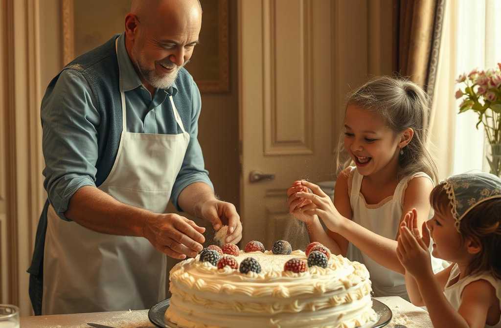 The table was strewn with flour, bowls of icing, and half-sliced strawberries. The air was thick with the scent of vanilla and sugar. Oliver stood on a chair, proudly piping swirls onto a cake while Lily giggled beside him.