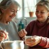 We lingered over tea with a splash of cherry cordial, chatting away. After his porridge, Patch curled up by the warm stove, sighing softly as he drifted off perhaps dreaming of his old courtyard. Outside, a gentle breeze made the apple trees sway, and ripe red apples drifted down onto the grass.