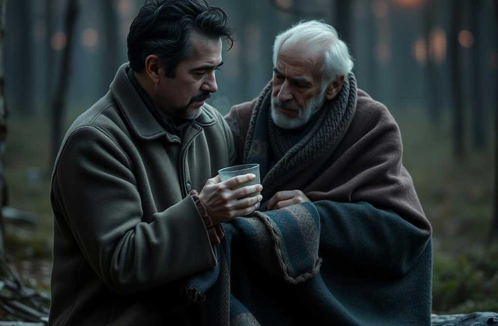 Los demás voluntarios formaron un semicírculo alrededor, sacaron el té del termo y le ofrecieron al anciano un bocadillo. Noté que sus manos temblaban más por el frío que por la fatiga.