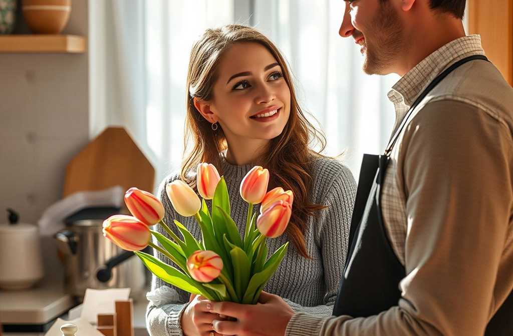 Sí, está todo en el coche. Y esto es para ti saca de la bolsa un pequeño ramo de tulipanes y se lo entrega.