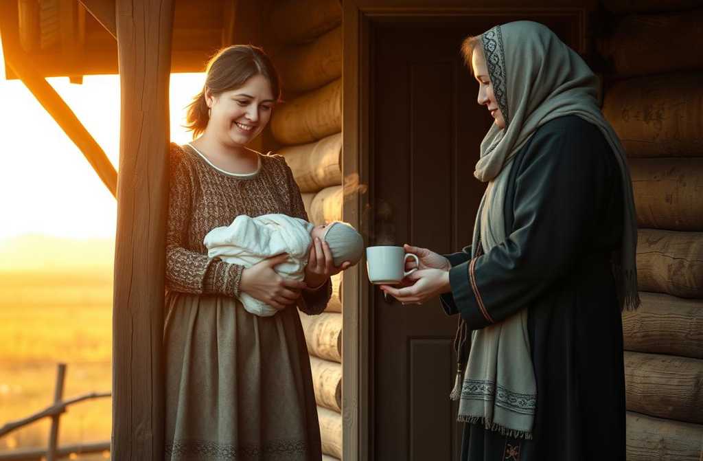 Pasaron días; María volvía de la granja con la leche, y al abrir la puerta de su casa vio a Catalina sentada a la mesa, con las manos cruzadas bajo el vientre. Al frente, el suegro y la suegra se habían encogido.