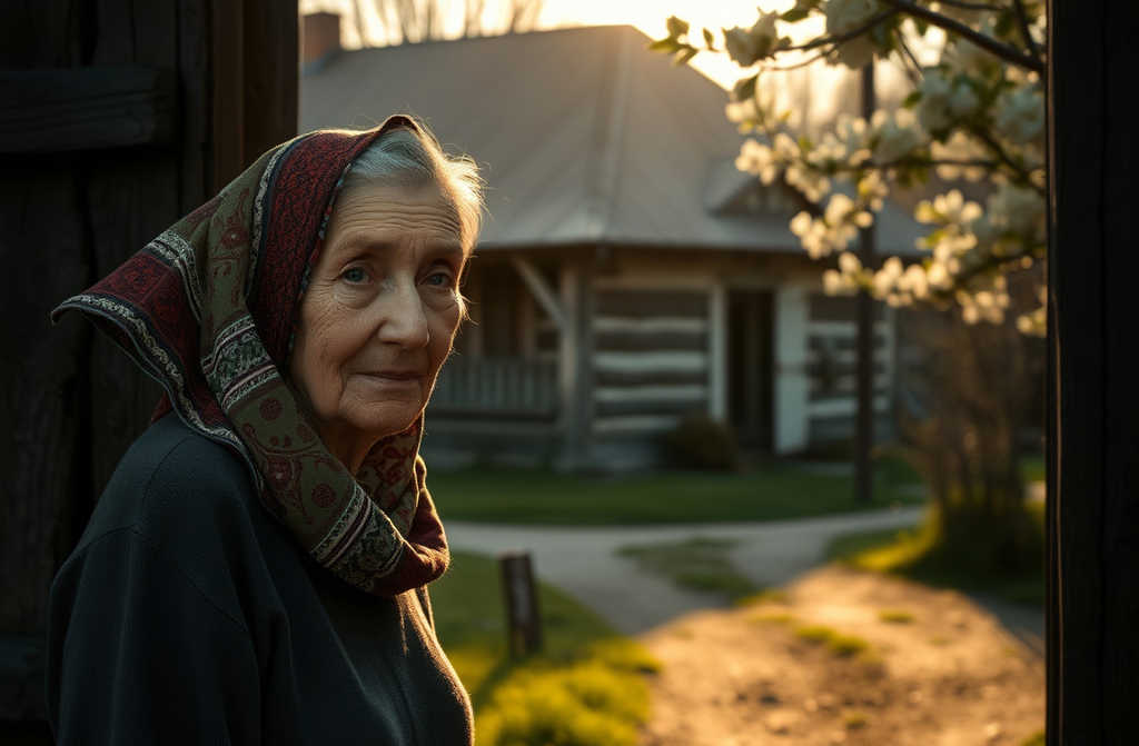She sat on her old bench by the porch, upright as a harp string, hands trembling on her knees. Her eyes were dry, gazing beyond the river. She tried to smile, but it came out like a sour sip of vinegar.