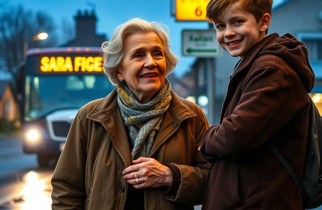 The sky over the little market town was getting darker fast, like someone had just turned the lights down. The street lamps on High Street flicked on at six oclock, and the wet tarmac threw back a dull glow from the glass globes. At the bus stop, where the bench still had bits of damp leaf stuck to it, the usual crowd was already gathered: a few kids with backpacks, two older folks Margaret Smith and Arthur Jones and a couple of younger adults. Everyone was waiting for the last service that every night took us out to the surrounding villages.