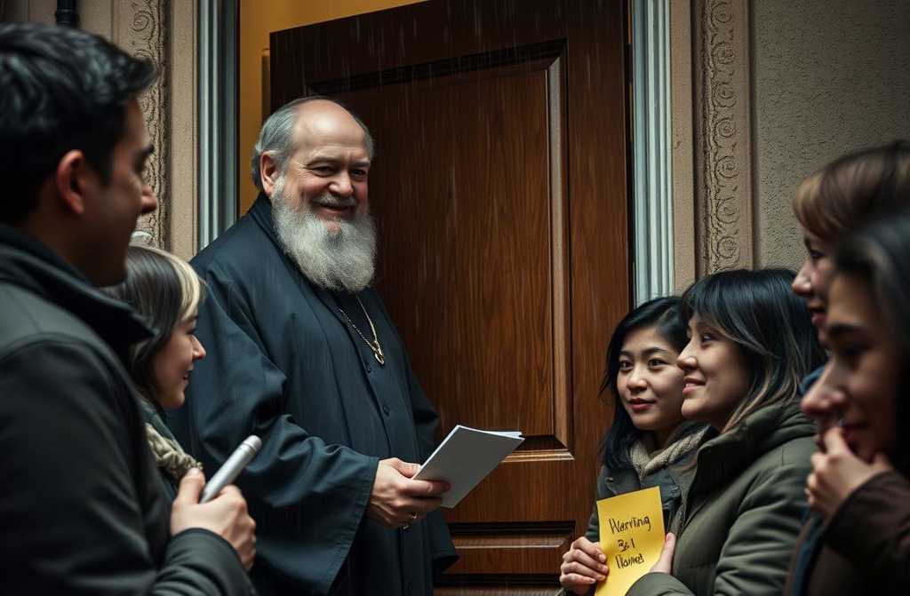 The Smiths exchanged glances. Mr Smith peeked through the peephole: unfamiliar faces, no badges, no identification. Mrs Smith whispered, Dont open yet. Let them move on.