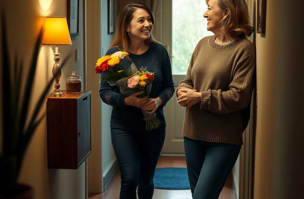 Finally, after setting up the flat, Emily gathered flowers, a bottle of champagne, and a box of chocolates, hoping the gifts wouldnt be thrown back at her doorstep. She knocked on Claires door, heart thudding.