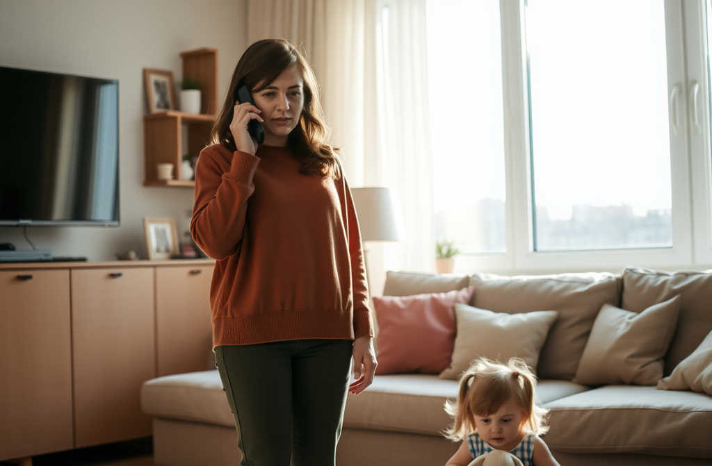 Mum, who were you talking to? Lucy peeked out of the nursery, clutching a wellworn plush rabbit.
