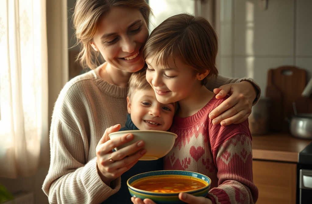 As he ladled the broth, Kate realised the boy wasnt fussy about food. She thought of her pampered niece, Emmas daughter, and sighed. Jack was probably dreaming of a simple meal like the ones Emma makes for her kids every day.
