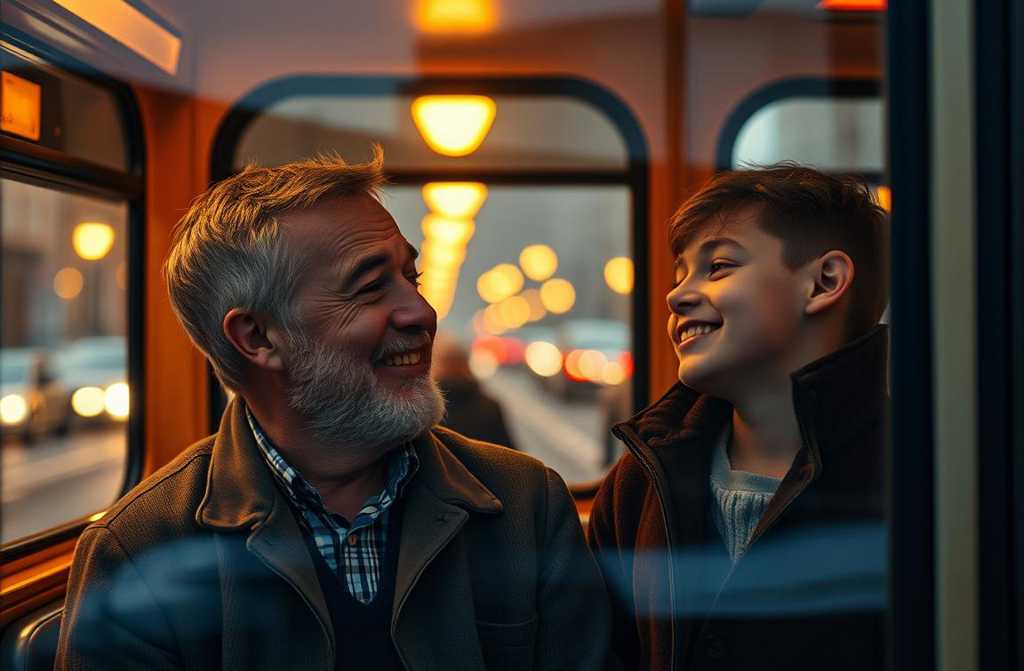 The tram rattled like an old biscuit tin, swaying along its route. Oliver sat by the window, watching the streetlights flicker to life in the dusk, forming a glowing chain in the darkness. He thought about his life.