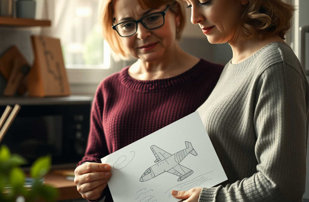 Michael drew a picture of an airplanelarge, silver, with blue wings and dark windows.