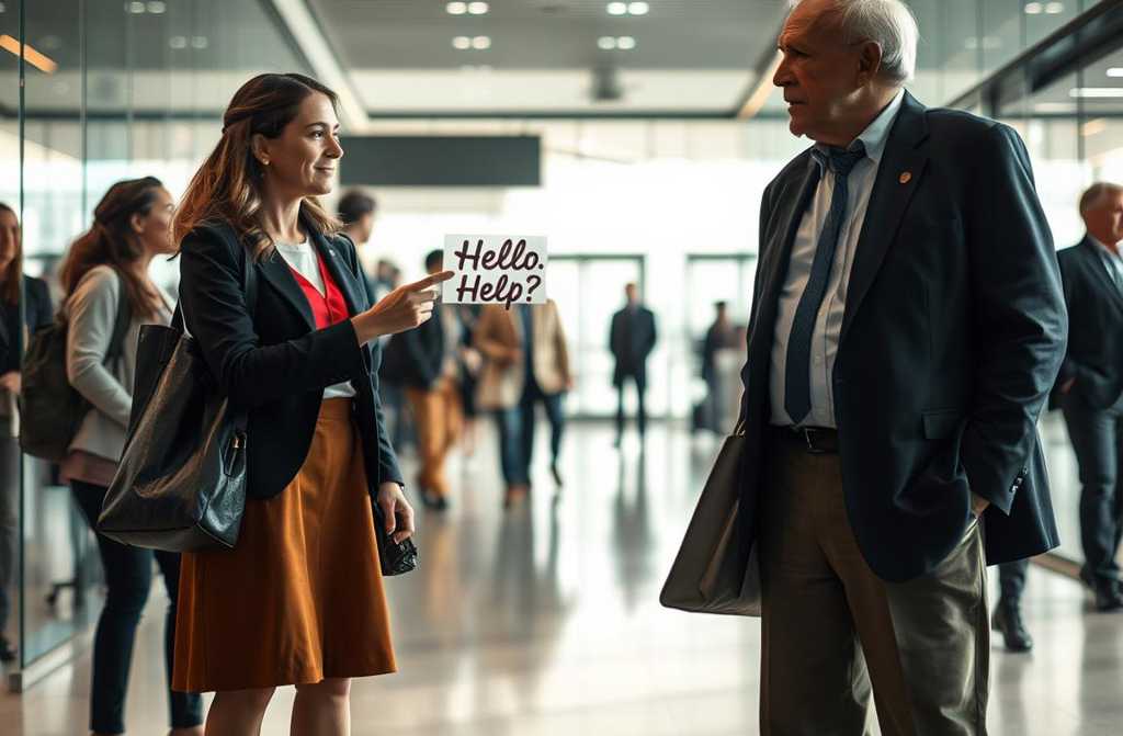 The lobby hummedcouriers, polished shoes, the sharp scent of coffee, the weight of deadlines. Emily was assembling presentation folders when an older man in a tweed blazer approached the reception desk. He smiled, tried to speak, then lifted his hands and signed.
