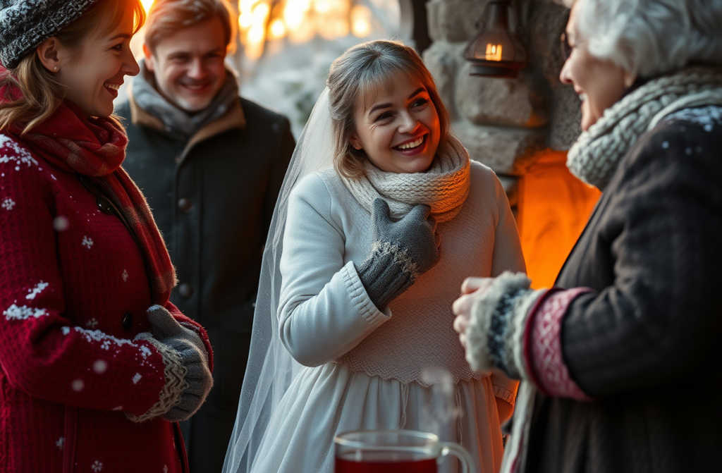 The train rolls through a tiny market town after a frostbitten field. The air is crisp, smelling of New Years fireworks. Snow glitters under the weak sun, crunching beneath our boots. The tops of the pine trees whisper and rustle. I start to shiver, but relief comes when a little village appears.