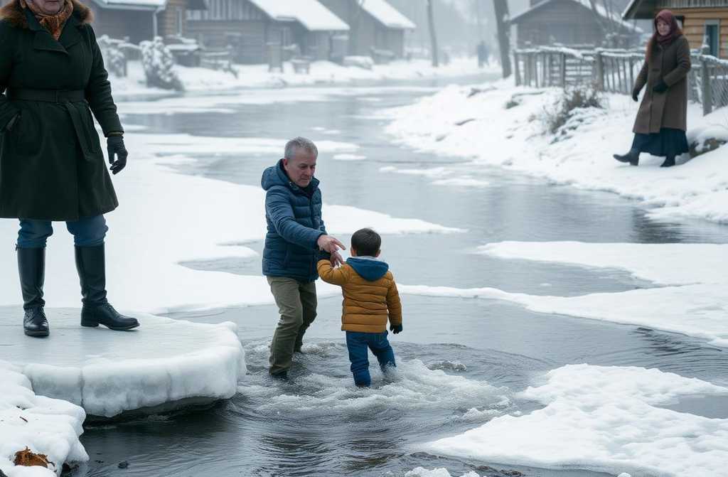 A ice floe carried the boy further from the bank, the current dragging it toward midstream. Worsemassive slabs of ice bore down from upstream, freed by a broken jam.
