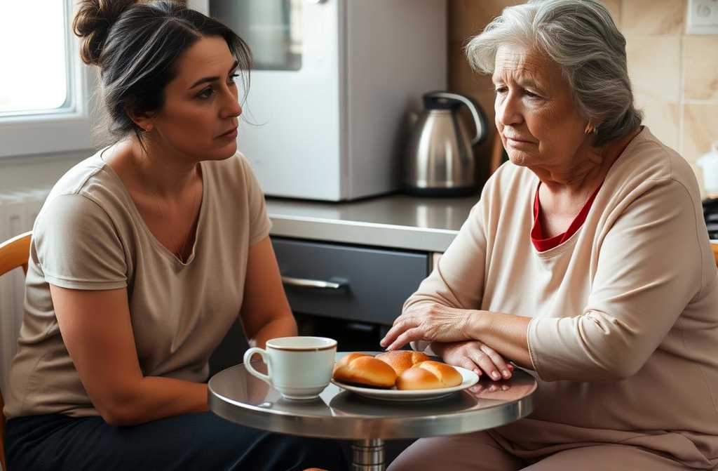 At that moment, Edith appeared in the doorwaya small, round woman with steel-grey hair pinned into a neat bun. Her floral dress and knitted cardigan seemed out of place in the warm flat.