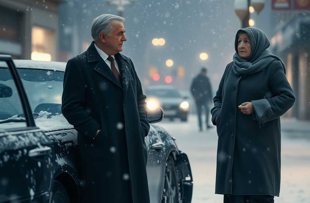 The next day Michael returned to the same lane where he had met the old woman weeks before, resolved not to leave anything to fate. He prowled the streets in his car, eyes scanning every passerby. As twilight fell, luck finally smiled: the snowdrift revealed the same elderly lady.