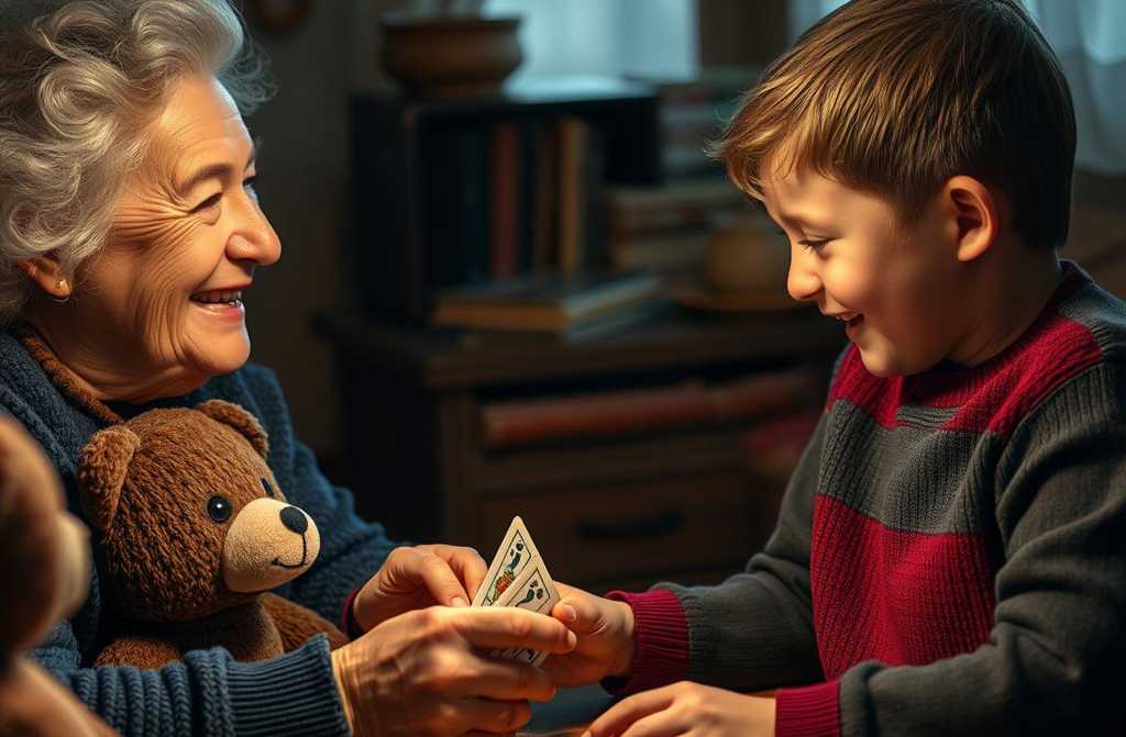 «Guess what? I taught little Tommy how to play cards!» Granny Polly announced cheerfully.