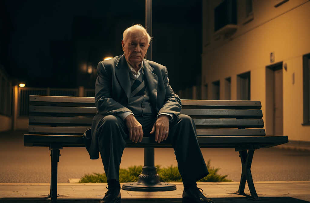 Horas más tarde, Luna, al volver a casa, vio a Salvi sentado en una banca bajo la tenue luz del farol del portal. Estaba encorvado, ya bebido, la mirada nublada, las manos sobre las rodillas. No la reconoció.