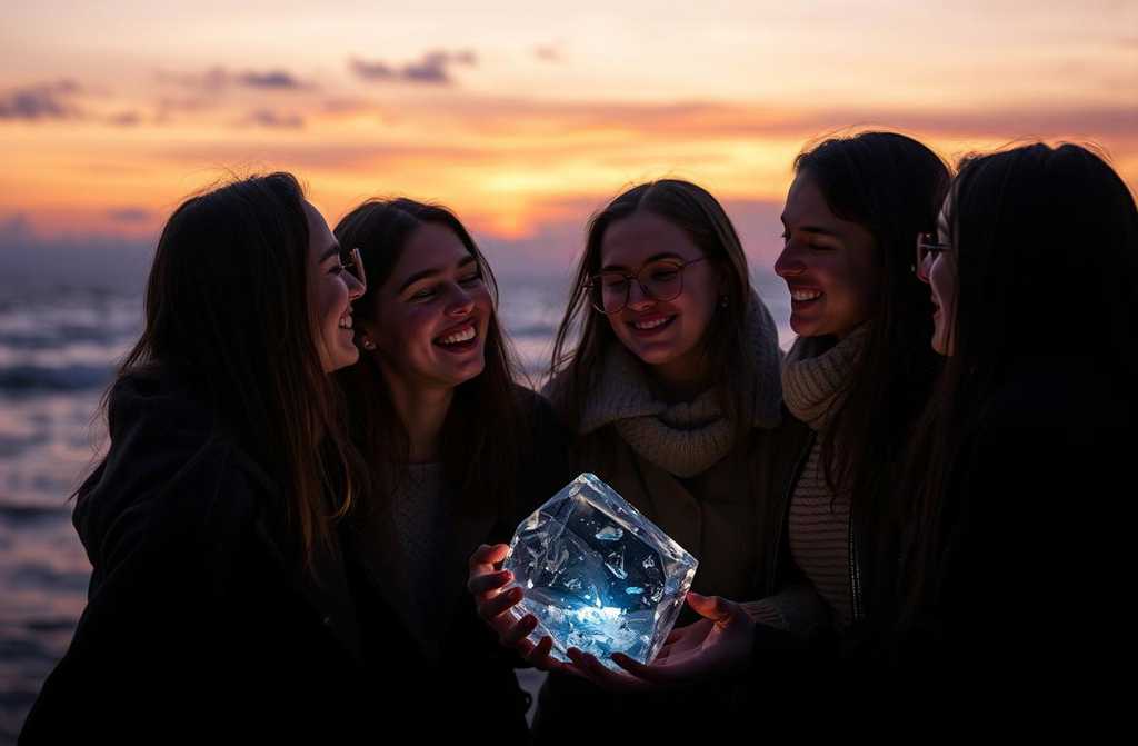 «Remember when you lost me at the market two days ago? I met an old woman selling peculiar stones. Bought this crystal from her,» she said, pulling a green-blue polyhedron with a chipped tip from her cloth bag. «She said it shows the future.»