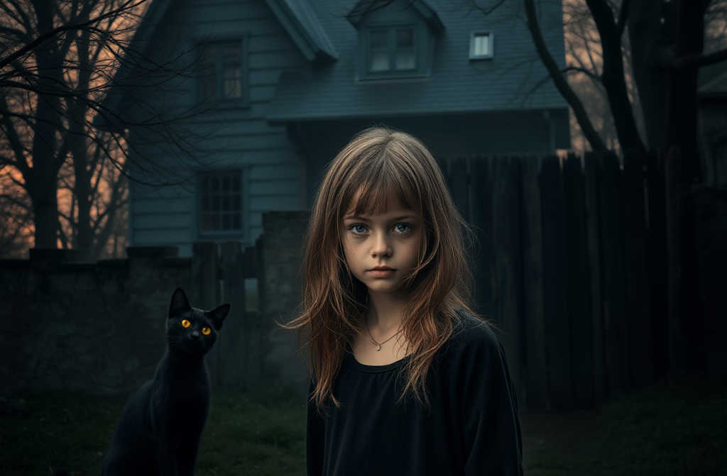 She looked up to see the same old woman, now accompanied by a gigantic black cat, its fur sleek and eyes glowing.