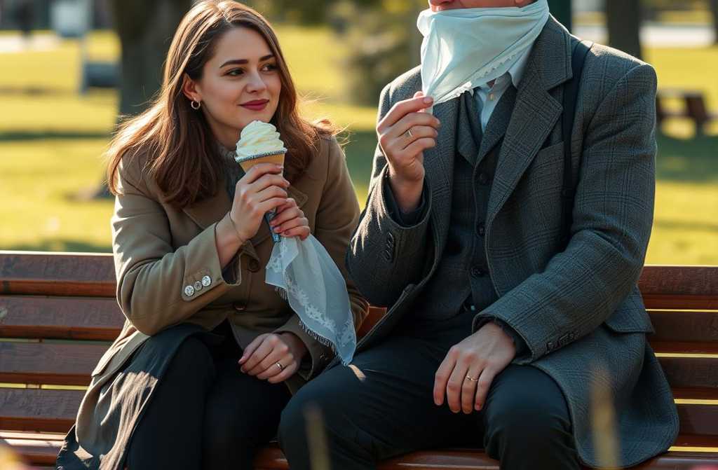 Er verließ das Büro, ging zur Eiswagenkutsche, kaufte ein Vanilleeis und setzte sich wieder auf die Bank, wo Liselotte bereits wartete.
