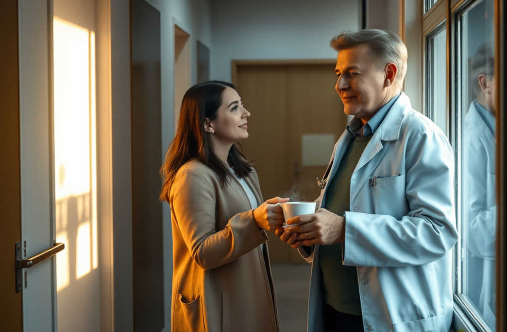Los días en el hospital transcurren con lentitud. Se cruzan miradas en los pasillos; cada vez que lo ve, una alegría infantil le brota en el pecho. El doctor a veces entra a la habitación de su tía, siempre cortés y profesional, pero siempre la mira un segundo más de lo necesario.