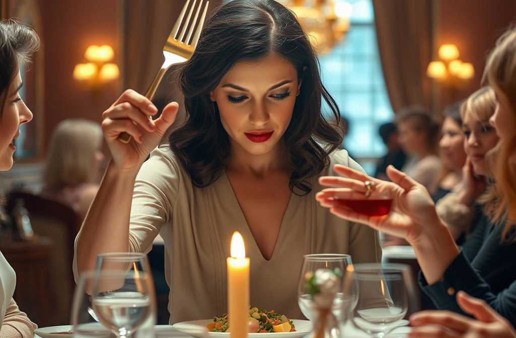 Emily froze, her fork suspended mid-air, her delicate frame turning to stone under the weight of shame. The slice of roast beef balanced on her fork never reached her plate, hanging in limbo. She sat opposite her husband, feeling dozens of eyespitying, curious, discomfortedpinning her down. Her own body felt foreign, her pulse throbbing in her throat, choking her breath.