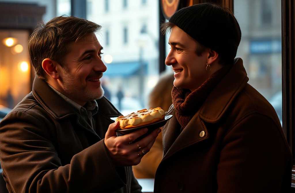 Die Tür schließt, ein kurzer Zugluftstoß kühlt den Tisch am Fenster. Stefan starrt in das beschlagene Glas, wo die Straßenlaterne spiegelt, und Jürgen dreht gedankenverloren den Löffel im Becher, ohne das Schweigen zu brechen. Die Spannung löst sich nicht, wirkt aber jetzt fast nötig als wäre sie das Fundament, um Klarheit zu finden.