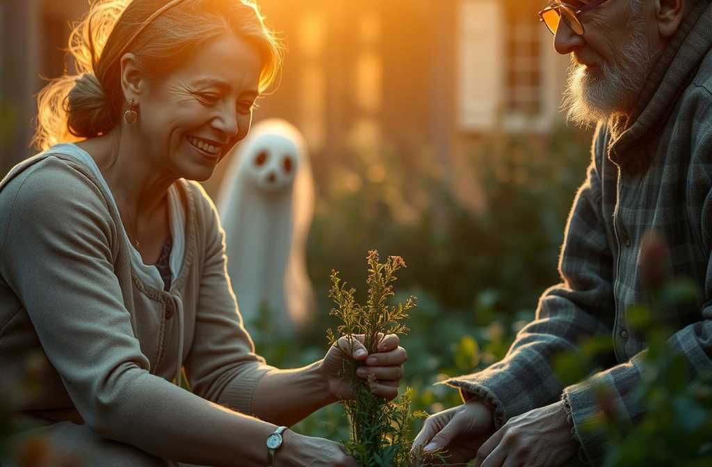 Con una sonrisa triste, Violeta la abrazó. La tierra volvió a revivir, las primeras flores brotaron y el fantasma desapareció. Desde entonces, Almudena pasa cada semana a visitar a Violeta, colgando cortinas, poniendo manteles y contando chistes. Y cada vez que mira el jardín, recuerda que, a veces, los problemas más tenebrosos se resuelven con un poco de compasión y una taza de infusión casera.